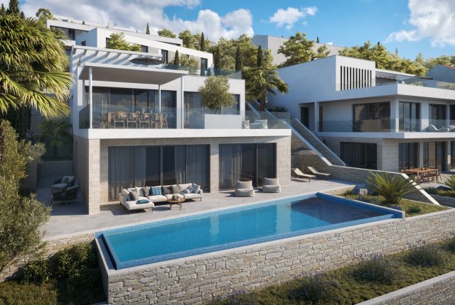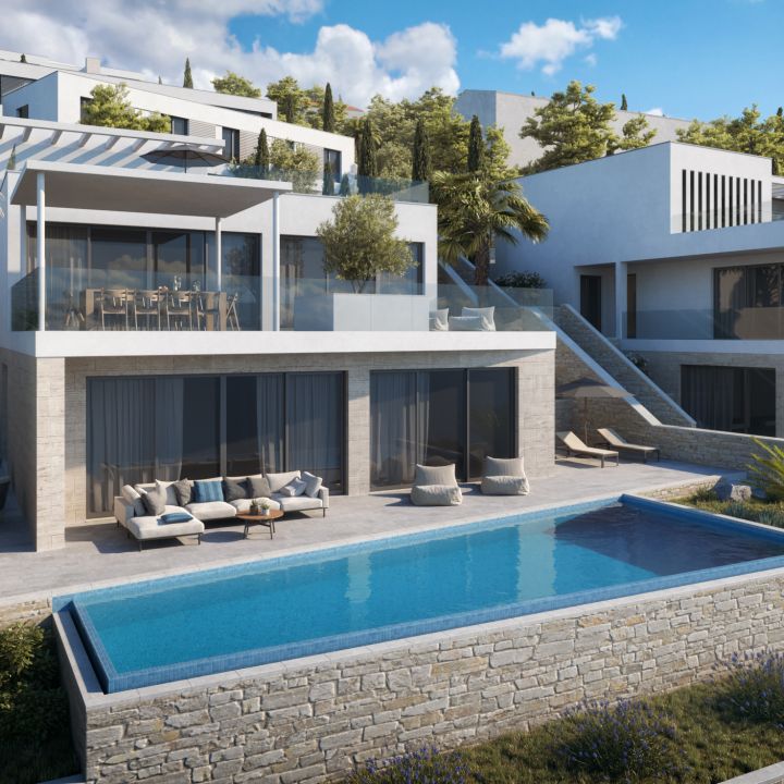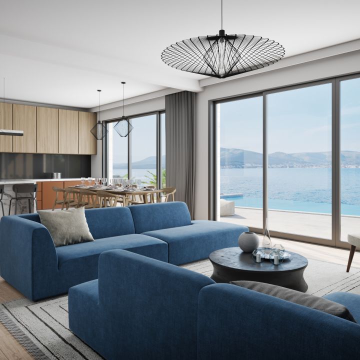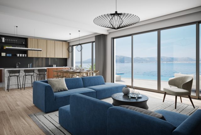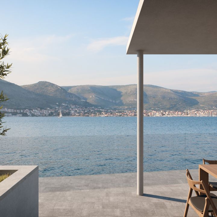 Apart from the villa no. 1, this modern, luxurious villa is also one of the few properties all along the coast of the Adriatic Sea, located in the first row of the coastline. Most of Croatia’s new buildings are usually being erected several hundred meters from the sea or inland. It stems from the limited accessibility of the coast and increasingly strict construction law, which forbids erecting buildings at the very shore.