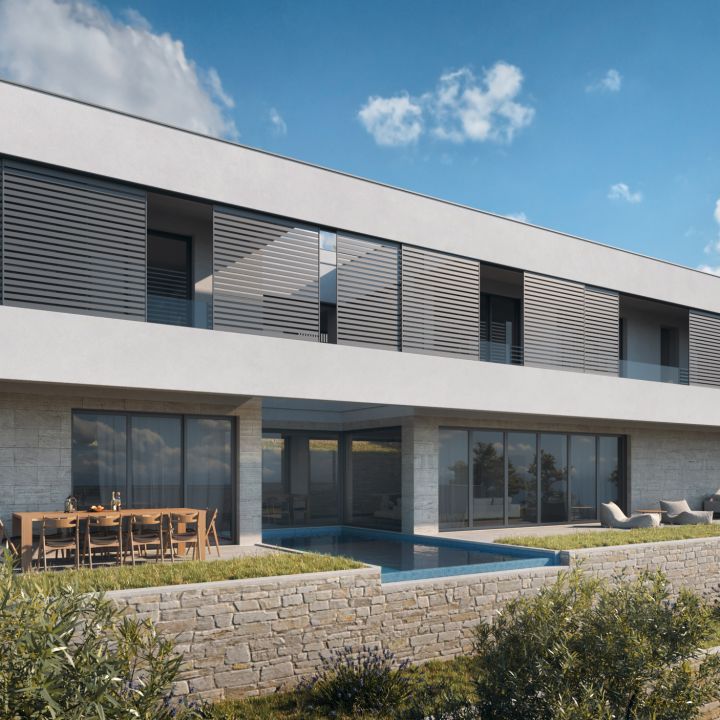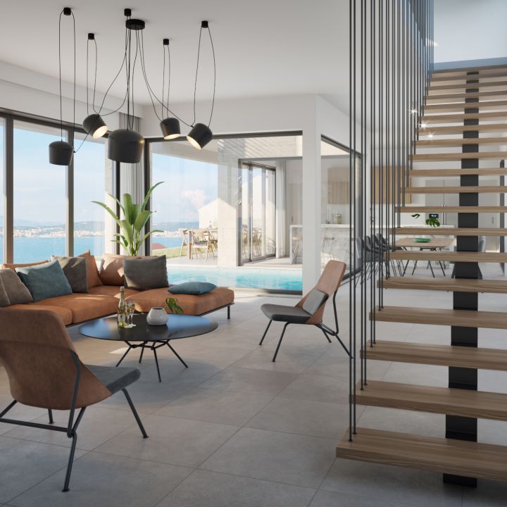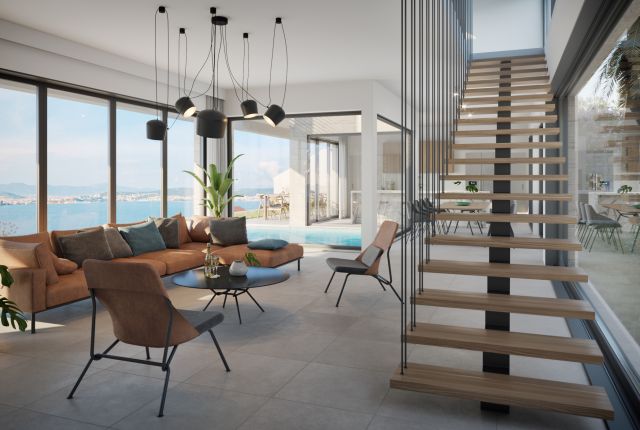 This unusual villa is located in the third row. Just as the other properties of Royal Hill Residence, it also delights with a beautiful, uneclipsed view of the sea and the opposite coast.