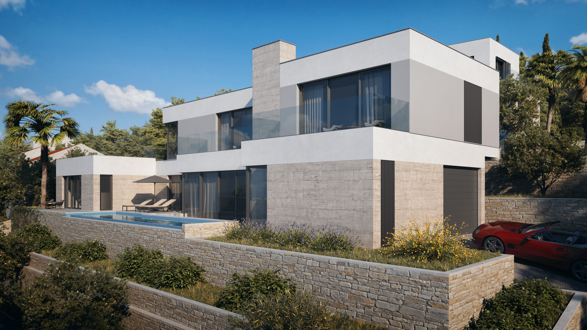 This luxurious villa combines style and functionality in perfect harmony, thanks to its purist shapes and smart accommodation plan.